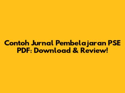 Contoh Jurnal Pembelajaran PSE PDF: Download & Review!