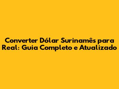 Converter Dólar Surinamês Para Real: Guia Completo E Atualizado