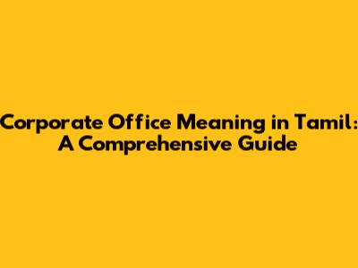 Corporate Office Meaning In Tamil: A Comprehensive Guide