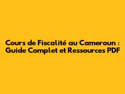 Cours De Fiscalité Au Cameroun : Guide Complet Et Ressources PDF
