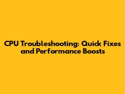 CPU Issues? Quick Fixes And Performance Boosts