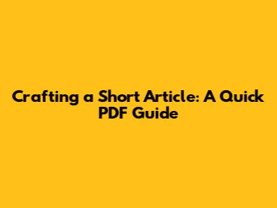 Crafting A Short Article: A Quick PDF Guide