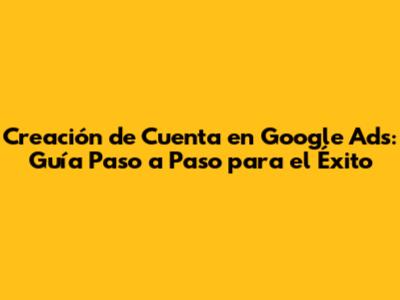Creación De Cuenta En Google Ads: Guía Paso A Paso Para El Éxito