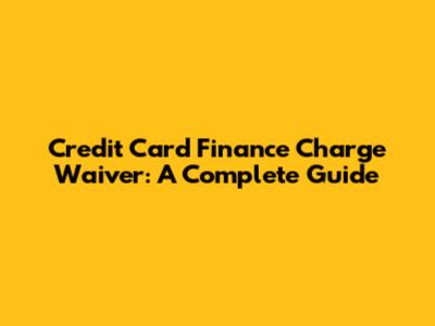 Credit Card Finance Charge Waiver: A Complete Guide