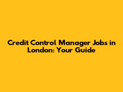 Credit Control Manager Jobs In London: Your Guide