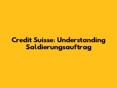 Let's dive into the world of Credit Suisse and unpack what a "Saldierungsauftrag" really means. If you've stumbled upon this term, you're probably dealing with some specific financial transactions or instructions related to your Credit Suisse account. Don't worry; we'll break it down in a way that's easy to understand, even if you're not a financial whiz. Think of this article as your friendly guide to navigating this particular aspect of Credit Suisse's services. We will explore its meaning, purpose, and how it impacts your financial activities. By the end of this read, you should have a solid grasp of what a Saldierungsauftrag is all about and how it fits into the bigger picture of managing your finances with Credit Suisse.