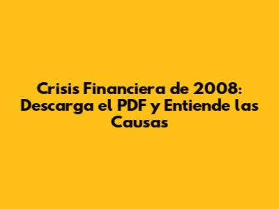 ¿Dónde Descargar un PDF sobre la Crisis Financiera de 2008?