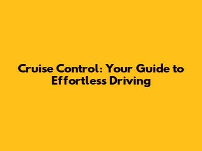 Cruise Control: Your Guide To Effortless Driving