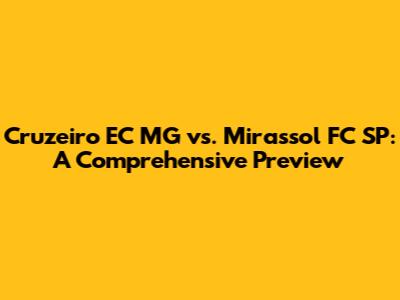 Hey guys! Football season is in full swing, and we've got a banger of a match to break down: Cruzeiro EC MG vs. Mirassol FC SP. This isn't just any game; it's a clash between two teams battling it out in the competitive world of Brazilian football. Whether you're a die-hard fan or just getting into the sport, this preview will give you all the juicy details, from team news and player analysis to where you can catch all the action. So, buckle up, grab your snacks, and let's dive into everything you need to know about this exciting Serie B showdown.