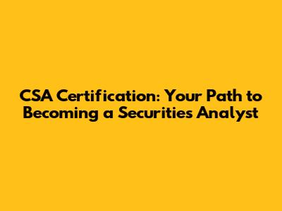 CSA Certification: Your Path To Becoming A Securities Analyst
