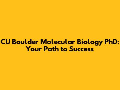 CU Boulder Molecular Biology PhD: Your Path To Success