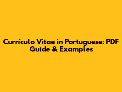 Currículo Vitae In Portuguese: PDF Guide & Examples