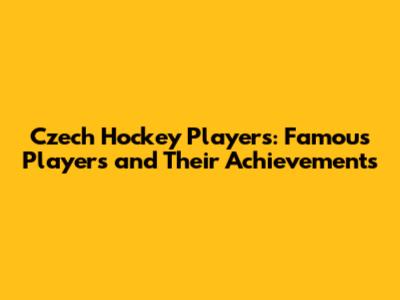 Czech Hockey Players: Famous Players And Their Achievements