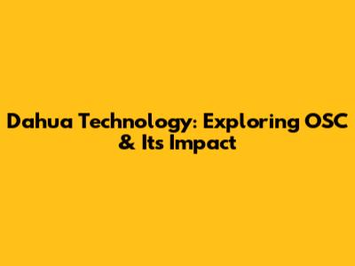 Dahua Technology: Exploring OSC & Its Impact