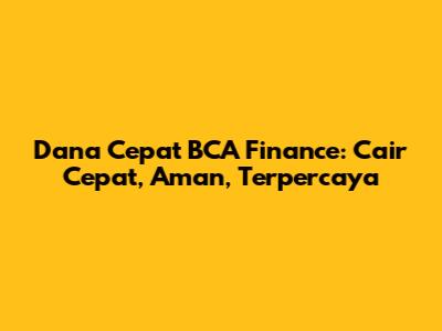 Dana Cepat BCA Finance: Cair Cepat, Aman, Terpercaya