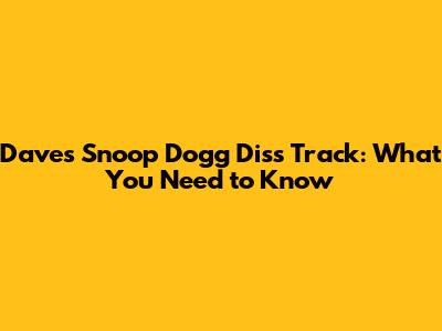 Dave's Snoop Dogg Diss Track: What You Need To Know