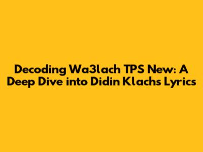 Hey music lovers! Ever found yourself completely hooked on a song, especially one with a killer beat and lyrics that just hit different? That's definitely the feeling 'Wa3lach TPS New' by Didin Klach gives me. So, what's it all about? Let's dive deep and decode the lyrics together, breaking down the meaning behind this awesome track. We'll explore the themes, the wordplay, and what makes this song resonate so strongly with so many listeners.