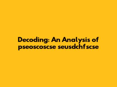Decoding: An Analysis Of Pseoscoscse Seusdchfscse
