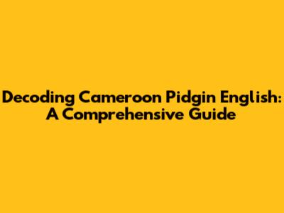 Decoding Cameroon Pidgin English: A Comprehensive Guide