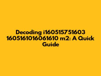 Decoding I160515751603 1605161016061610 M2: A Quick Guide