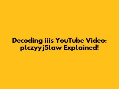 Decoding Iii's YouTube Video: Plczyyj5law Explained!