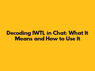 Decoding 'IWTL' In Chat: What It Means And How To Use It