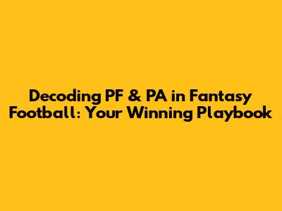 Decoding PF & PA In Fantasy Football: Your Winning Playbook