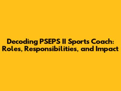 Decoding PSEPS II Sports Coach: Roles, Responsibilities, And Impact
