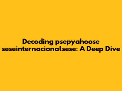 Decoding Psepyahoose Seseinternacionalsese: A Deep Dive