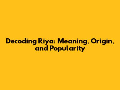 Decoding Riya: Meaning, Origin, And Popularity