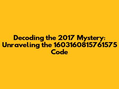 Decoding The 2017 Mystery: Unraveling The 1603160815761575 Code