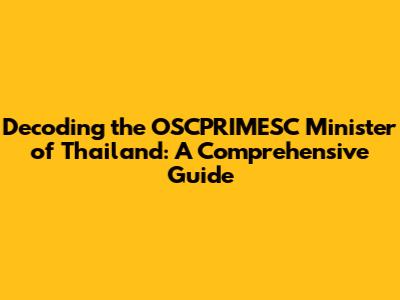 Decoding The OSCPRIMESC Minister Of Thailand: A Comprehensive Guide