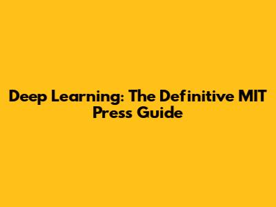Deep Learning: The Definitive MIT Press Guide