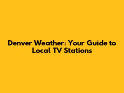 Denver Weather: Your Guide To Local TV Stations