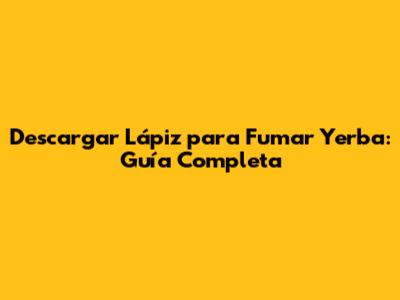 Descargar Lápiz Para Fumar Yerba: Guía Completa
