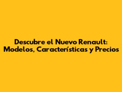 Descubre El Nuevo Renault: Modelos, Características Y Precios