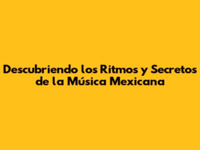 Descubriendo Los Ritmos Y Secretos De La Música Mexicana