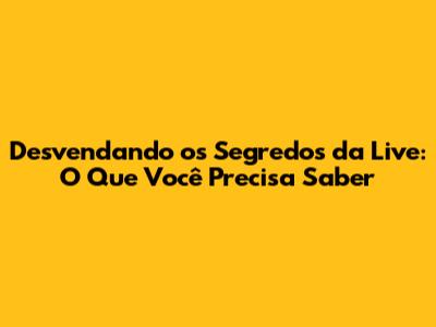 Desvendando Os Segredos Da Live: O Que Você Precisa Saber