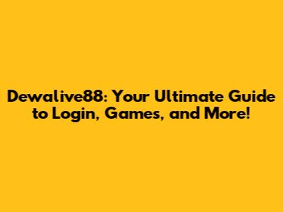 Dewalive88: Your Ultimate Guide To Login, Games, And More!