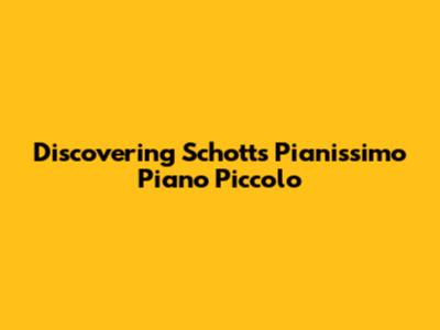 Discovering Schott's Pianissimo Piano Piccolo