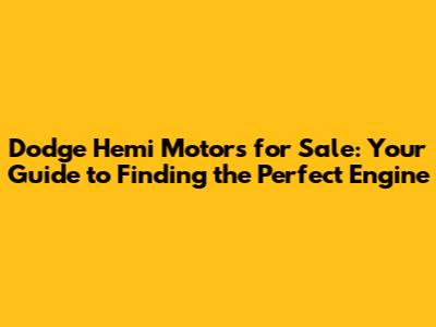 Where to Find Dodge Hemi Motors for Sale