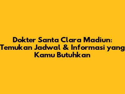 Dokter Santa Clara Madiun: Jadwal & Informasi Lengkap