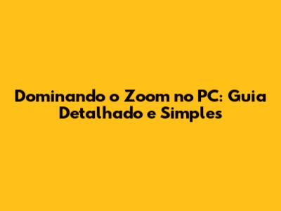 Dominando O Zoom No PC: Guia Detalhado E Simples