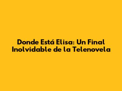 Donde Está Elisa: Un Final Inolvidable De La Telenovela