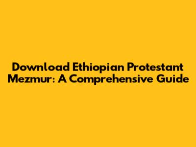 Download Ethiopian Protestant Mezmur: A Comprehensive Guide