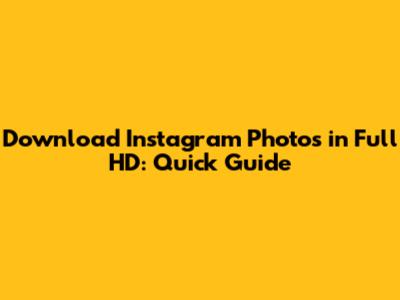 Download Instagram Photos In Full HD: Quick Guide