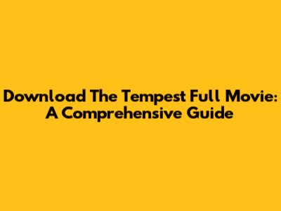 Download The Tempest Full Movie: A Comprehensive Guide