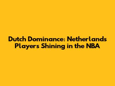 Dutch Dominance: Netherlands Players Shining In The NBA