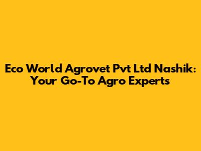 Hey guys! If you're looking for the real deal when it comes to agro solutions in Nashik, then Eco World Agrovet Pvt Ltd is where it's at. Seriously, these guys know their stuff, and I'm here to give you the lowdown on why they should be your first call.