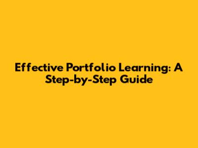 Effective Portfolio Learning: A Step-by-Step Guide